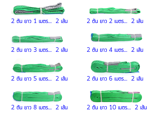 สายรัด 2 ตัน ยาว 1,2,3,4,5,6,8,10 ม. อย่างละ 2 เส้น รวม 16 เส้น*สินค้าใหม่