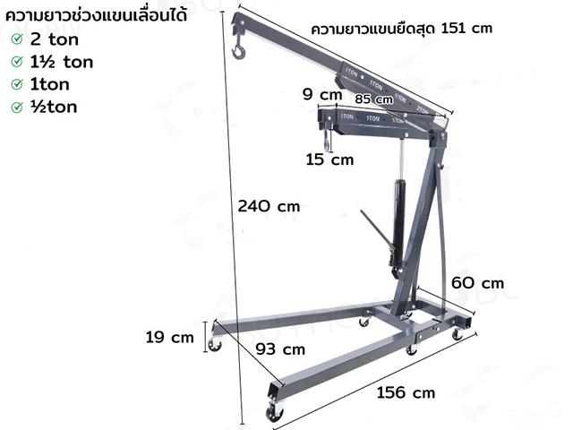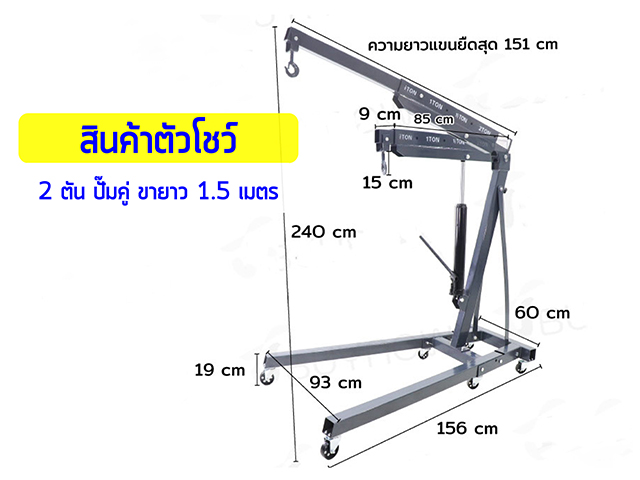 เครนไฮดรอลิก เครนยกของ 2 ตัน ปั๊มคู่ (ขายาว1.5เมตร) *สินค้าตัวโชว์