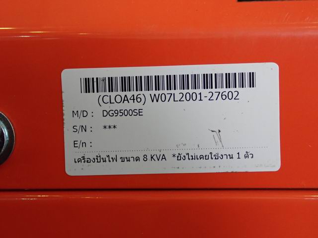 เครื่องปั่นไฟ ขนาด 8 KVA *ยังไม่เคยใช้งาน 1 ตัว