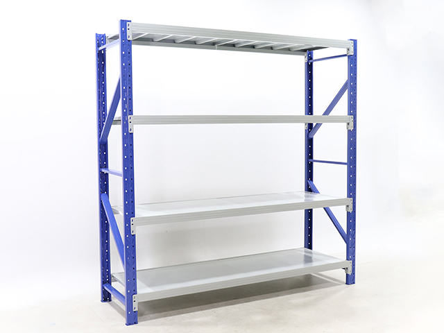 ชั้นวางของในโรงงาน4 ชั้น 60x200x200 ซม.สีน้ำเงินขาว ขาเชื่อม 3 ตัว*สินค้าตัวโชว์