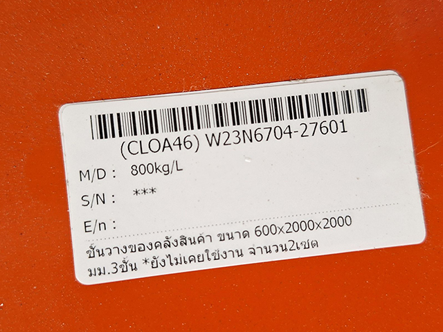 ชั้นวางของคลังสินค้า ขนาด 600x2000x2000 มม.3 ชั้น *ยังไม่เคยใช้งาน จำนวน 2 ชุด