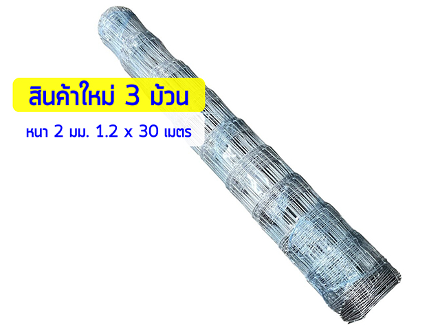 รั้วตาข่ายถักปมรุ่นตาถี่ล่างห่างบน ช่อง4x6นิ้วหนา2มม.1.2x30เมตร 3ม้วน*สินค้าใหม่