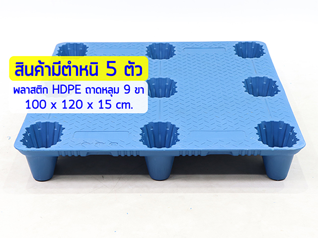 พาเลทพลาสติก HDPE แบบถาดหลุม 9 ขา 100x120x15 cm สีฟ้า 5 ตัว *สินค้ามีตำหนิ