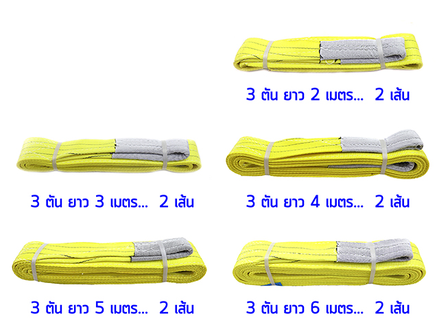 สลิงผ้าใบแบน สายพานยกของ 3 ตัน ยาว 2,3,4,5,6 เมตร อย่างละ 2 เส้น*สินค้าใหม่