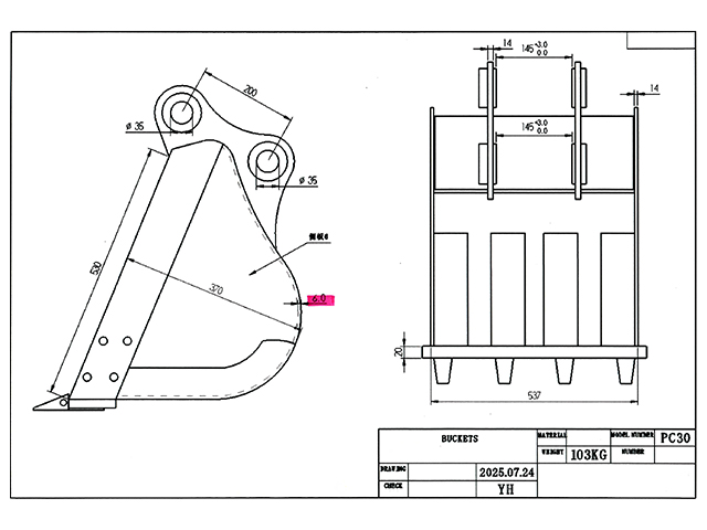 บุ้งกี๋ PC30 สำหรับรถขุด หน้ากว้าง 53 cm *สินค้าใหม่