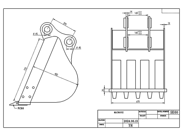 บุ้งกี๋ SK60 สำหรับรถขุด หน้ากว้าง 67 cm *สินค้าใหม่