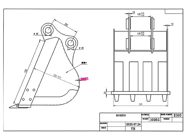 บุ้งกี๋ CAT303 สำหรับรถขุด หน้ากว้าง 53 cm *สินค้าใหม่