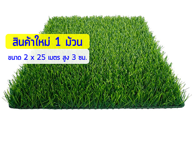 หญ้าเทียม หญ้าเทียมปูพื้น ขนาด 2x25 เมตร สูง 3 ซม. 1 ม้วน *สินค้าใหม่