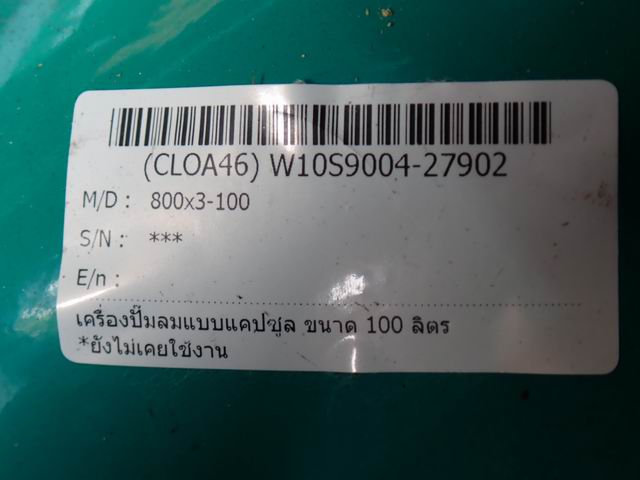 เครื่องปั๊มลมแบบแคปซูล ขนาด 100 ลิตร *ยังไม่เคยใช้งาน