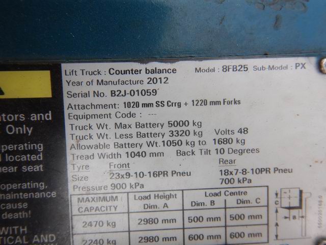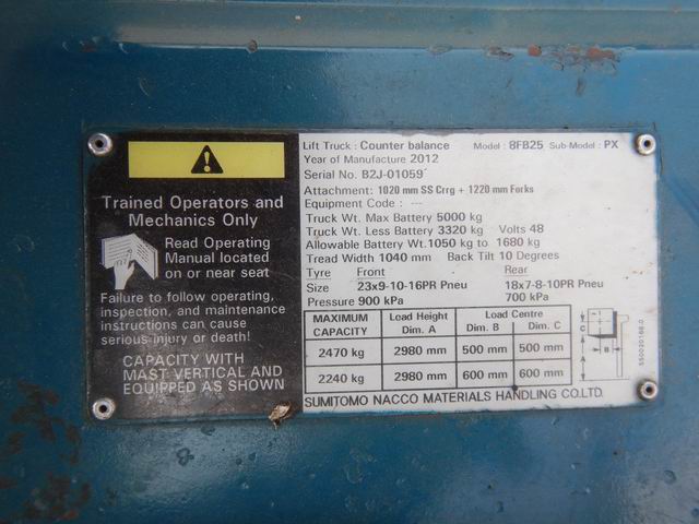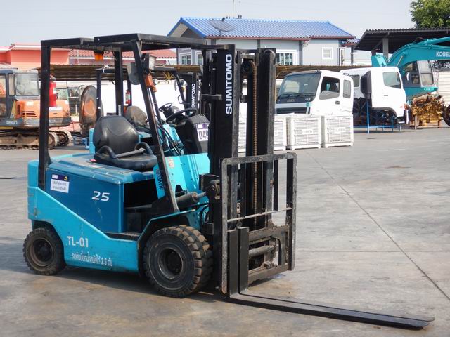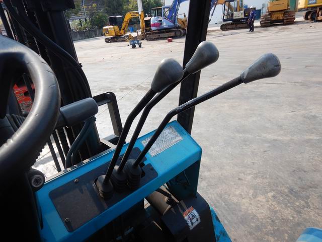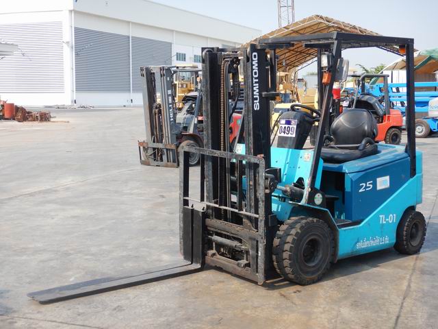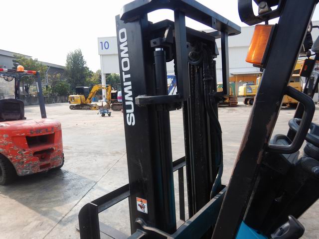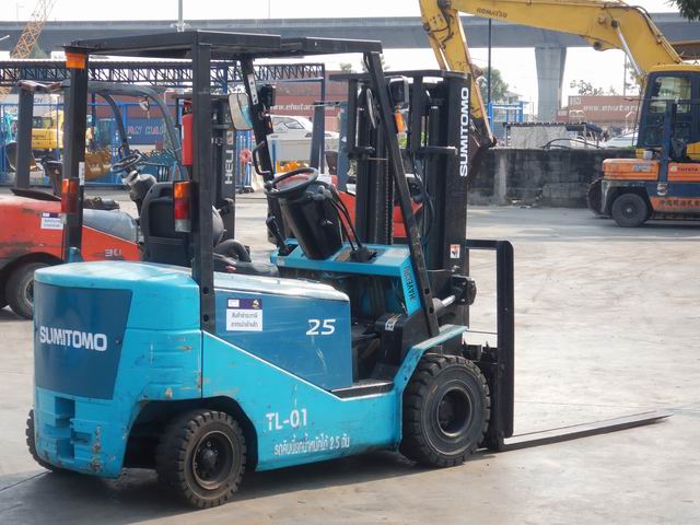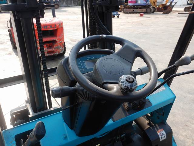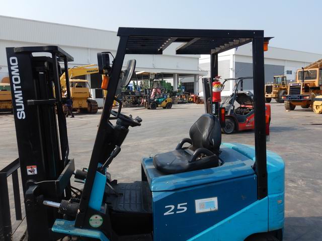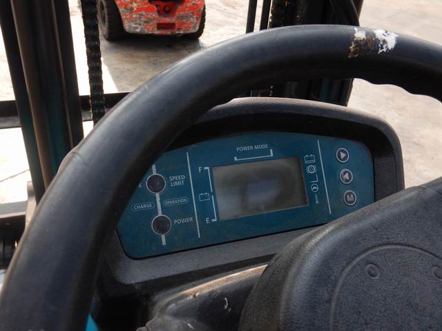 รถยกไฟฟ้าแบบนั่งขับ ขนาด 2.5 ตัน เสาสูง 3 เมตร แผงงาสไลด์ อุปกรณ์ไม่ครบ