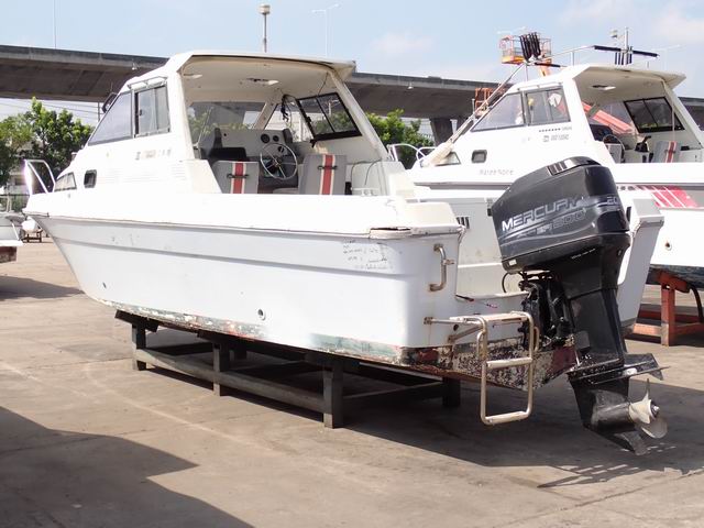 เรือ ขนาด 25 ฟุต พร้อมเครื่องยนต์เบนซิน 200 แรงม้า หางเสือ 24 นิ้ว