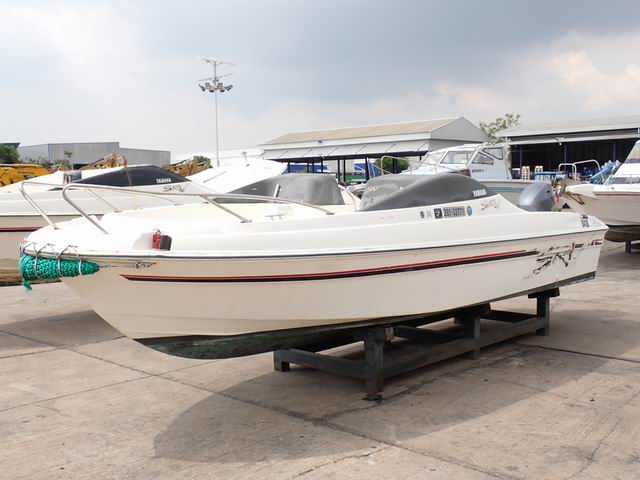 เรือ ขนาด 20 ฟุต พร้อมเครื่องยนต์เบนซิน 60 แรงม้า หางเสือ 20 นิ้ว