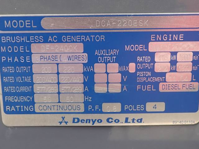 เครื่องปั่นไฟ 220 KVA. เครื่องยนต์ดีเซล 6 สูบ