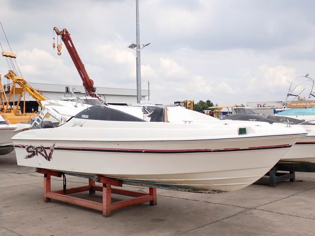 เรือ ขนาด 20 ฟุต พร้อมเครื่องยนต์เบนซิน 60 แรงม้า หางเสือ 18 นิ้ว