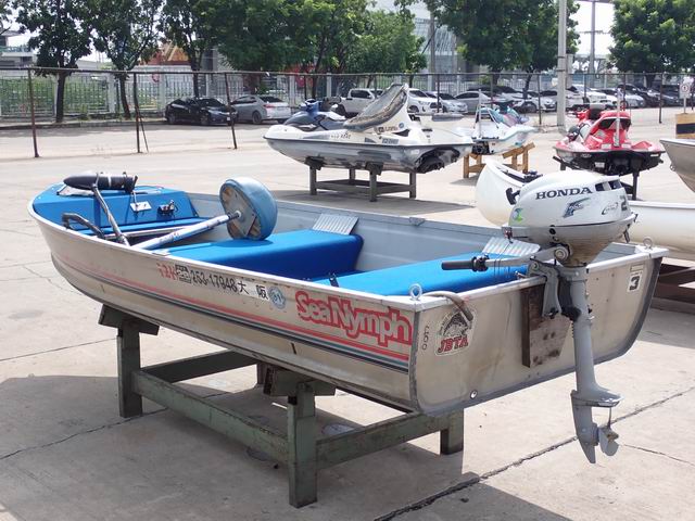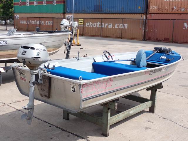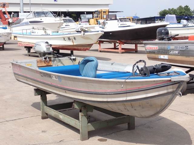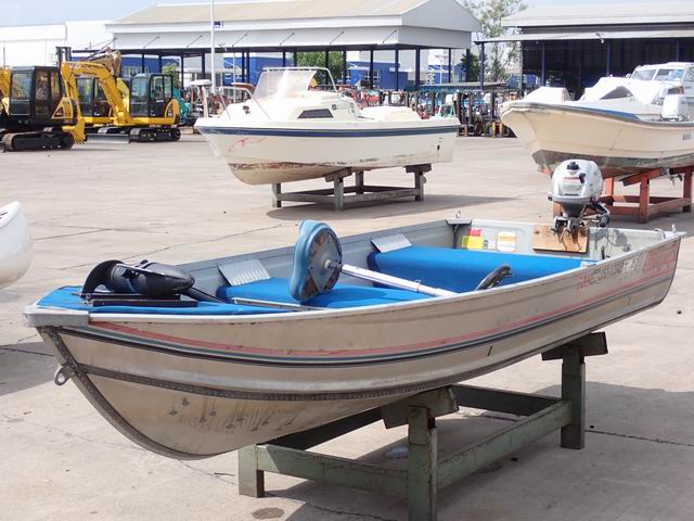 เรืออลูมิเนียม ขนาด 12 ฟุต พร้อมเครื่องยนต์เบนซิน 2 แรงม้า หางเสือ 17 นิ้ว
