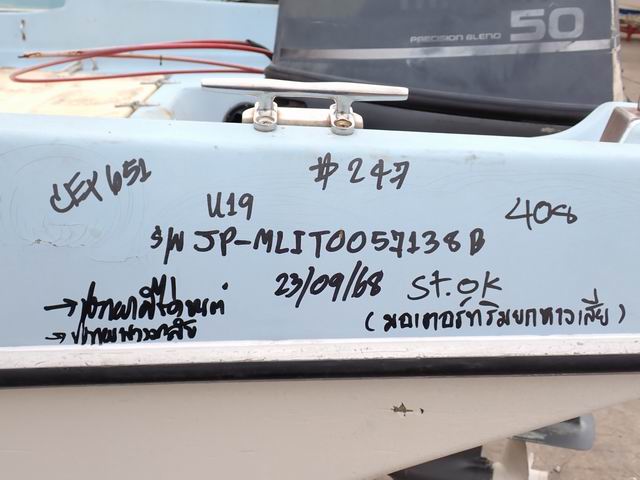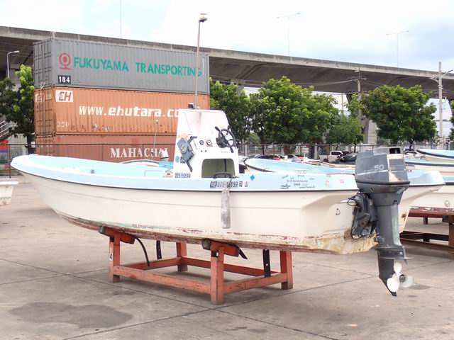 เรือประมง ขนาด 19 ฟุต พร้อมเครื่องยนต์เบนซิน 50 แรงม้า หางเสือ 22 นิ้ว