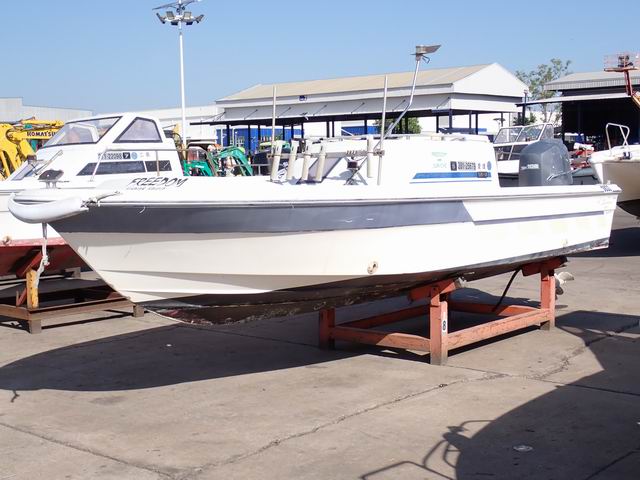 เรือ ขนาด 20 ฟุต พร้อมเครื่องยนต์เบนซิน 100 แรงม้า หางเสือ 24 นิ้ว