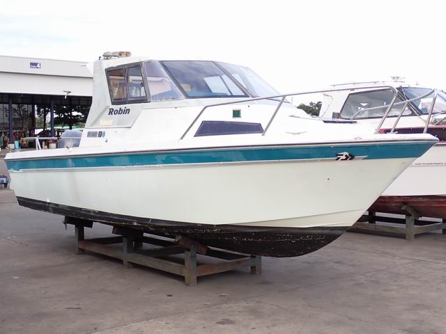 เรือ ขนาด 23 ฟุต พร้อมเครื่องยนต์เบนซิน 130 แรงม้า หางเสือ 19 นิ้ว ไม่มีใบพัดมา