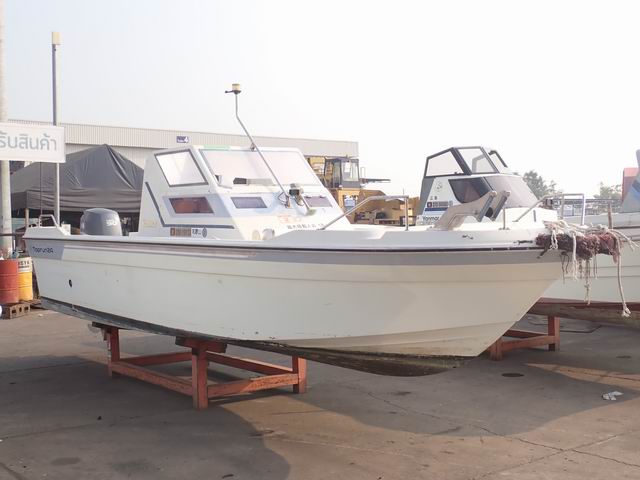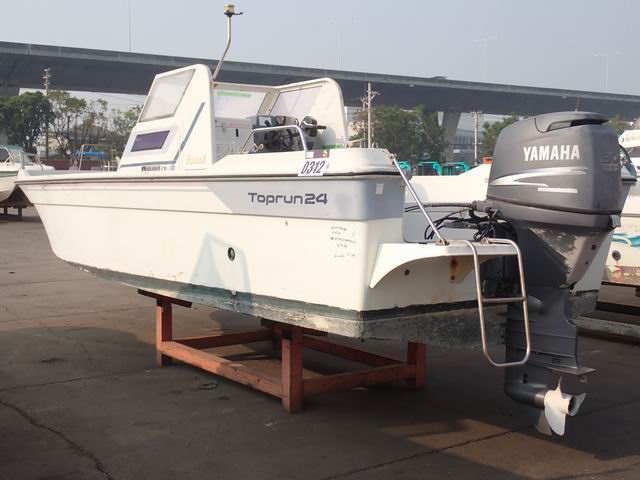 เรือ ขนาด 24 ฟุต พร้อมเครื่องยนต์เบนซิน 90 แรงม้า หางเสือ 26 นิ้ว