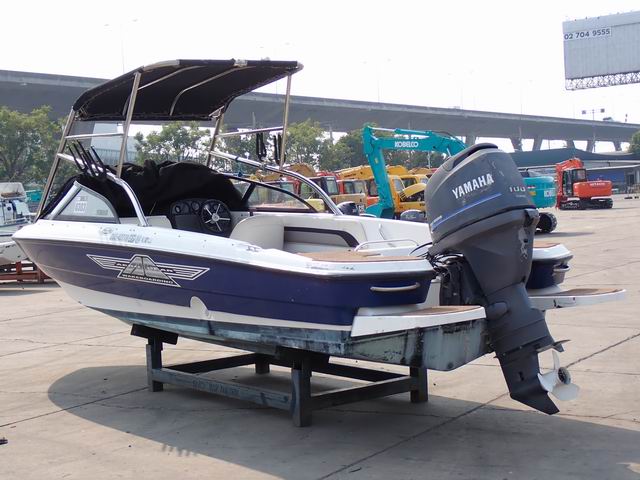เรือ ขนาด 21 ฟุต พร้อมเครื่องยนต์เบนซิน 100 แรงม้า หางเสือ 24 นิ้ว
