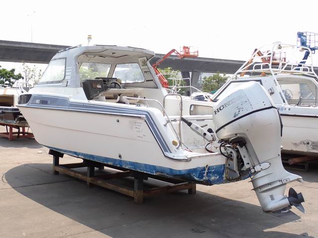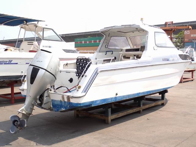 เรือ ขนาด 25 ฟุต พร้อมเครื่องยนต์เบนซิน 135 แรงม้า หางเสือ 25 นิ้ว