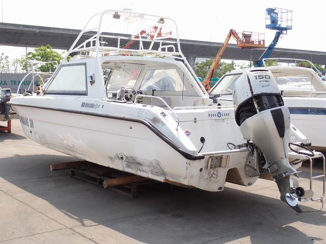 เรือ ขนาด 25 ฟุต พร้อมเครื่องยนต์เบนซิน 150 แรงม้า หางเสือ 21 นิ้ว