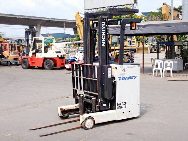 รถยกไฟฟ้าแบบยืนขับ ขนาด 1.4 ตัน เสาสูง 3.5 เมตร แผงงาสไลด์