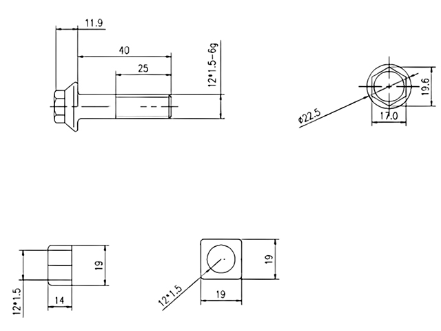 สกรู สำหรับสป๊อกเก็ต M12x40 สำหรับรถขุด SK60-8 *สินค้าใหม่