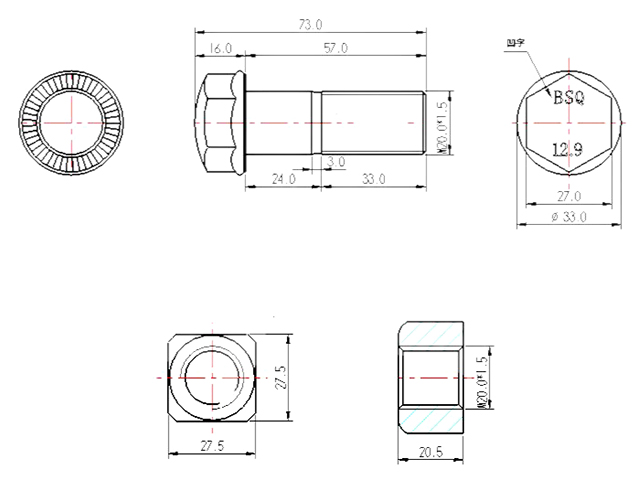 ชุดน็อต-สกรู สำหรับ TRACK SHOE M20x57 สำหรับรถขุดSK200-8 *สินค้าใหม่