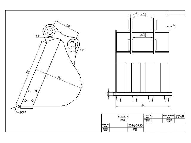 บุ้งกี๋ PC40 สำหรับรถขุด หน้ากว้าง 61.7 cm