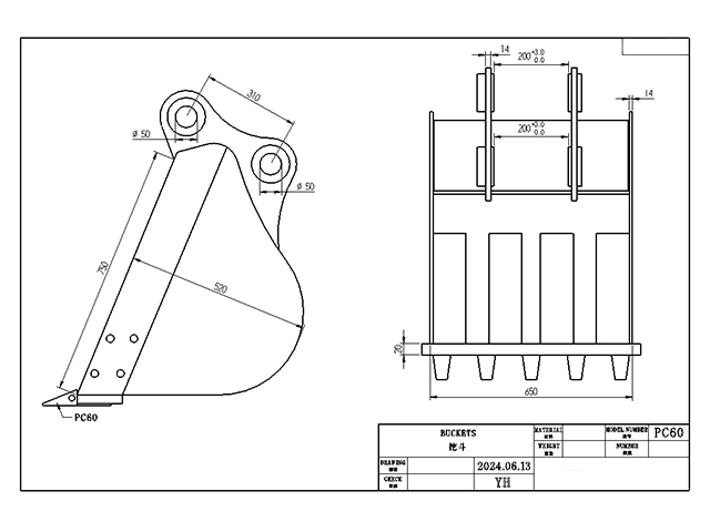 บุ้งกี๋ PC60 สำหรับรถขุด หน้ากว้าง 65 cm