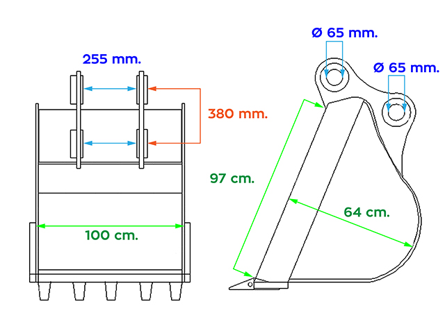 บุ้งกี๋ SK140 หน้ากว้าง 1 เมตร สีดำ พร้อมสลัก 2 ชิ้น *สินค้าใหม่