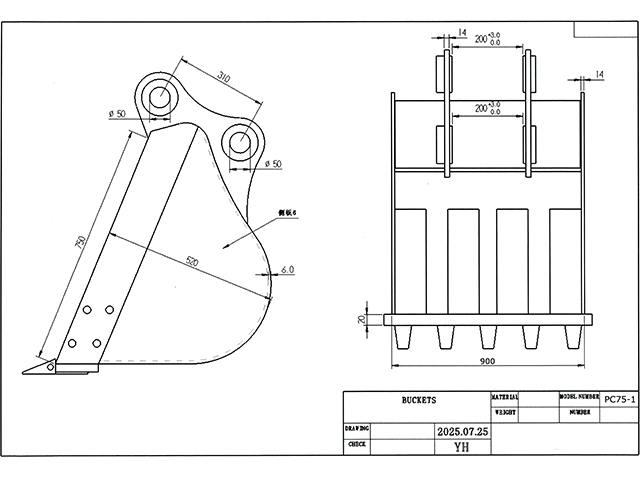 บุ้งกี๋ PC75 หน้ากว้าง 90 ซม. สีดำ พร้อมสลัก 2 ชิ้น *สินค้าใหม่