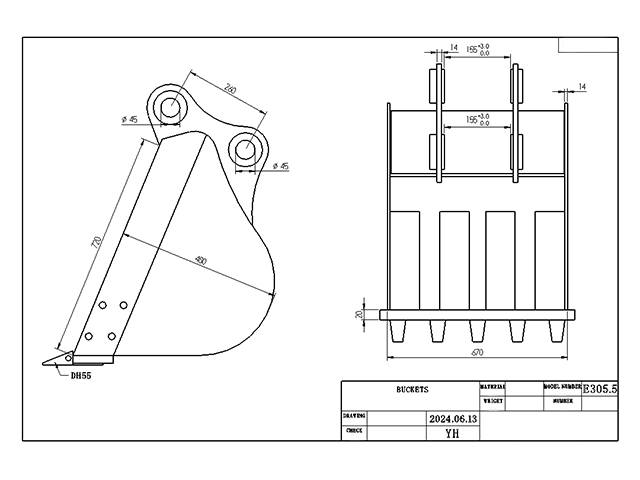 บุ้งกี๋ CAT305 สำหรับรถขุด หน้ากว้าง 66 cm สลัก 45 มม. *สินค้าใหม่
