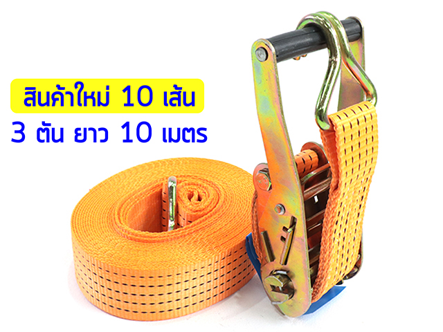 สายรัดรถบรรทุก สายรัดก๊อกแก๊ก 3 ตัน ยาว 10 เมตร จำนวน 10 เส้น *สินค้าใหม่
