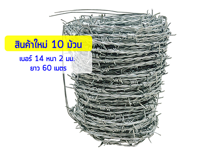 ลวดหนาม ลวดล้อมรั้ว เบอร์14 หนา 2 มม. ยาว 60 เมตร 10 ม้วน *สินค้าใหม่