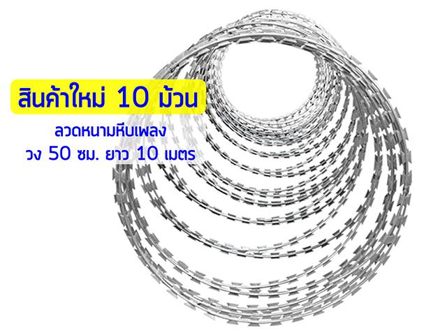 ลวดหนามหีบเพลง ลวดหนามทำรั้ว วง 50 ซม. ยาว 10 เมตร 10 ม้วน *สินค้าใหม่