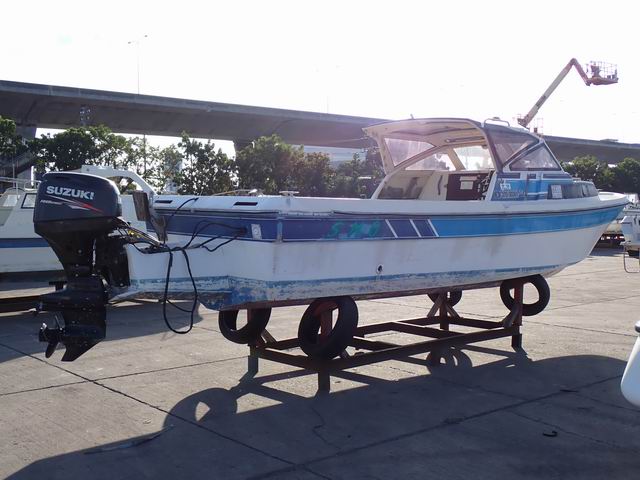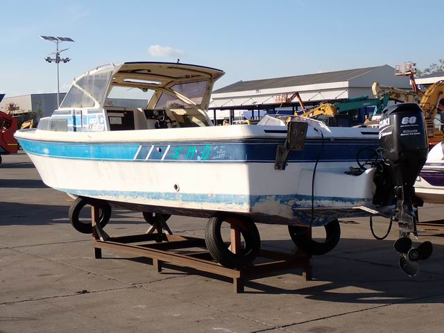 เรือ ขนาด 22 ฟุต พร้อมเครื่องยนต์เบนซิน 60 แรงม้า หางเสือ 20 นิ้ว
