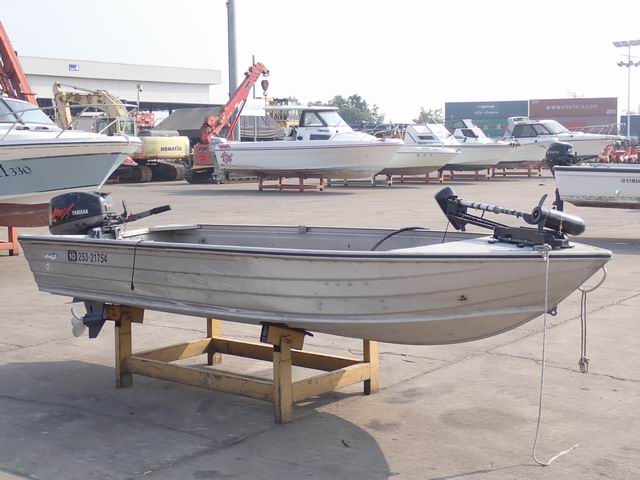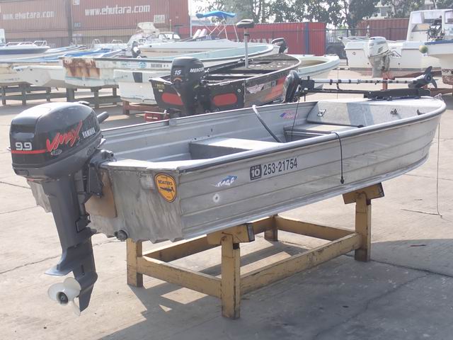 เรืออลูมิเนียม ขนาด 12 ฟุต พร้อมเครื่องยนต์เบนซิน 9.9 แรงม้า หางเสือ 18 นิ้ว
