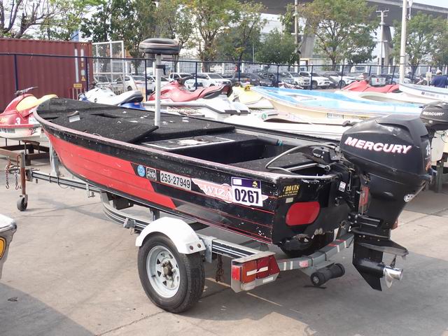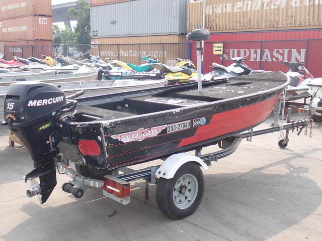 เรืออลูมิเนียม 12 ฟุต เครื่องยนต์เบนซิน 15 แรงม้า หางเสือ 16 นิ้ว พร้อมหางลาก