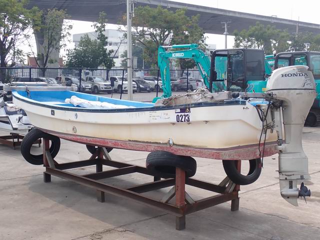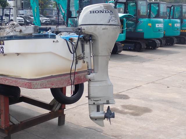 เรือ ขนาด 20 ฟุต พร้อมเครื่องยนต์เบนซิน 8 แรงม้า หางเสือ 28 นิ้ว