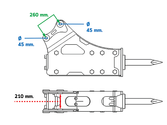 หัวกระแทก *ยังไม่เคยใช้งาน สลัก45มม. ระหว่างหู210มม. ระหว่างสลัก260มม.